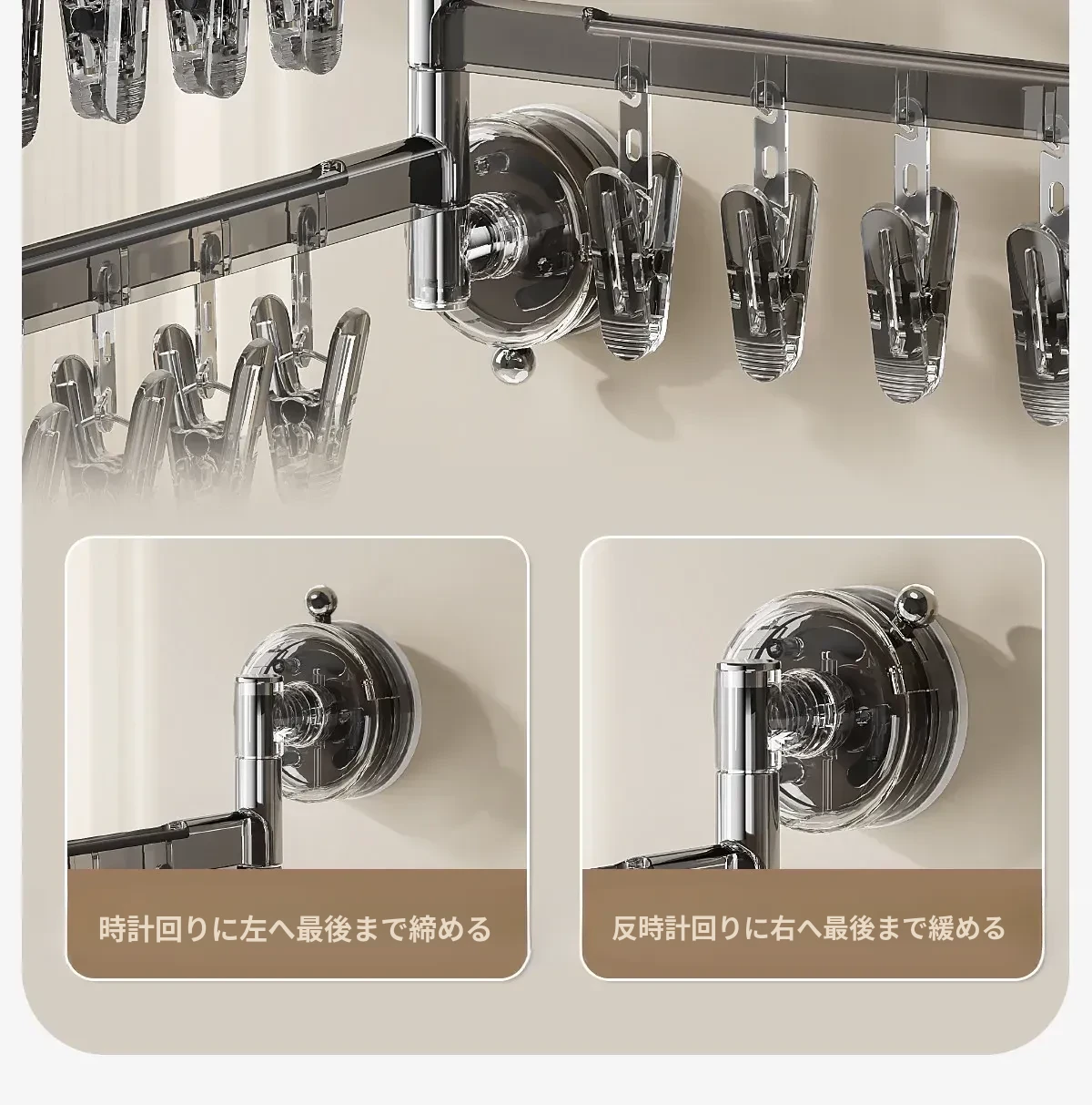 【奶油白】三杆21クリップ✅️108°回転可能な干燥