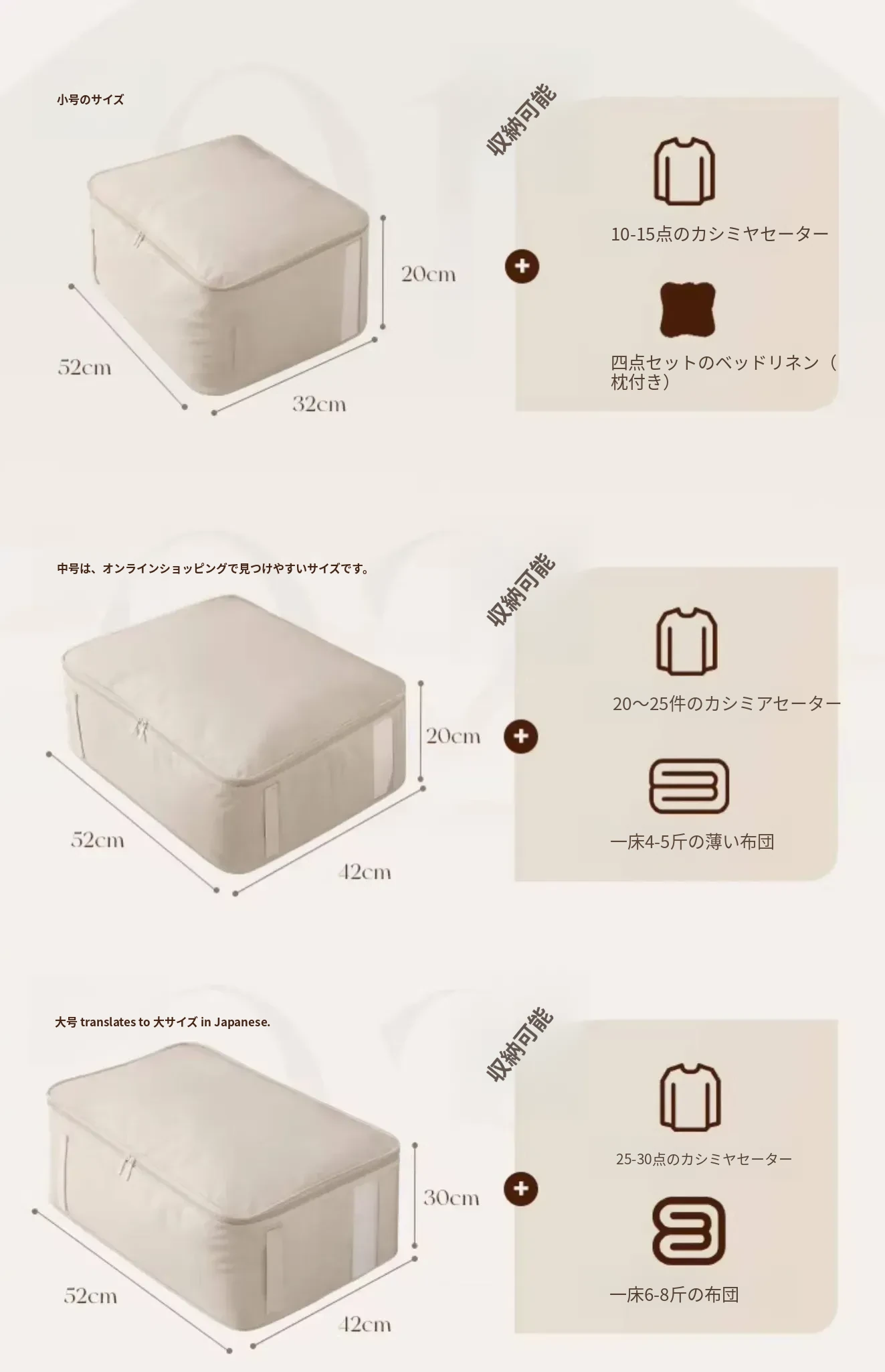 小サイズ:52*32*20cm