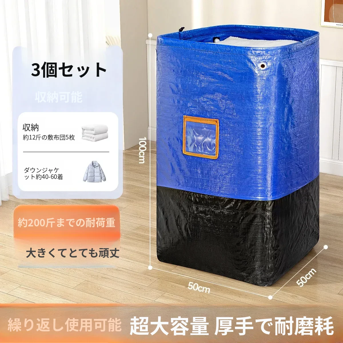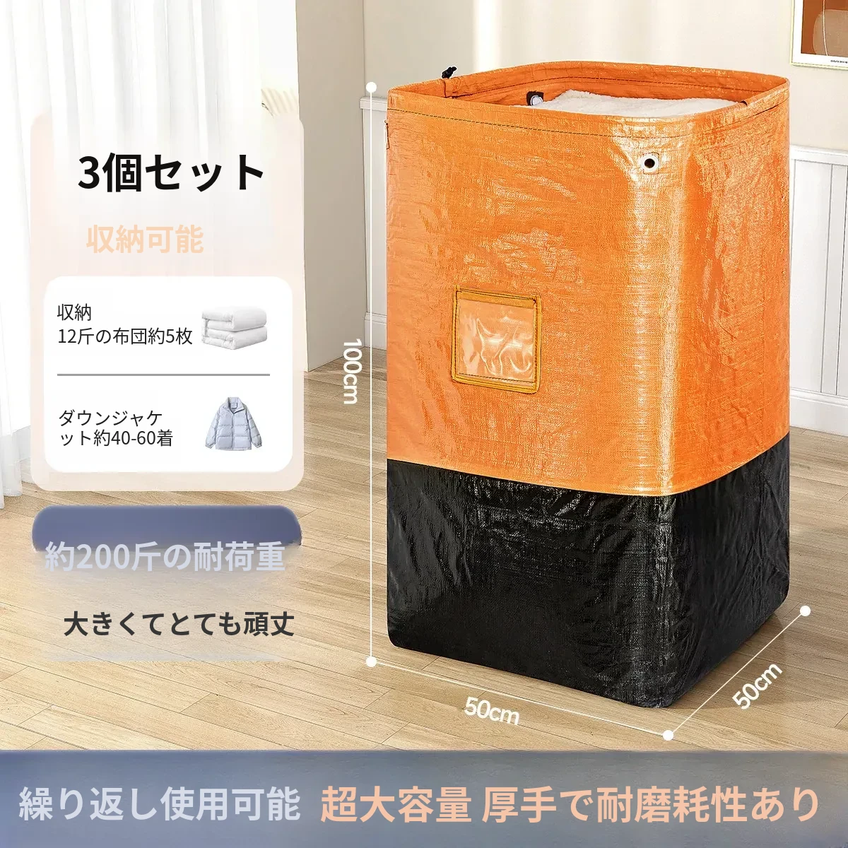 防湿大容量収納バッグ!衣類・寝具をすっきり整理できる、便利な布団収納袋。旅行や引っ越しにも最適!収納力抜群で、生活空間をスッキリ整えましょう!