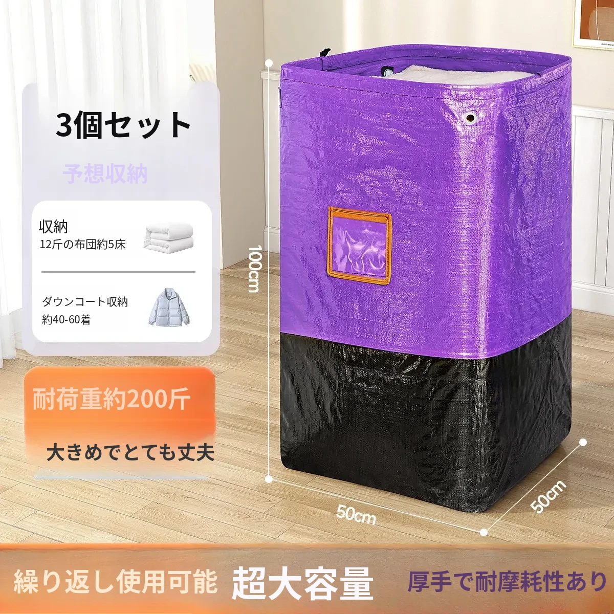 紫-250L-3個セット【家族の収納必需品】