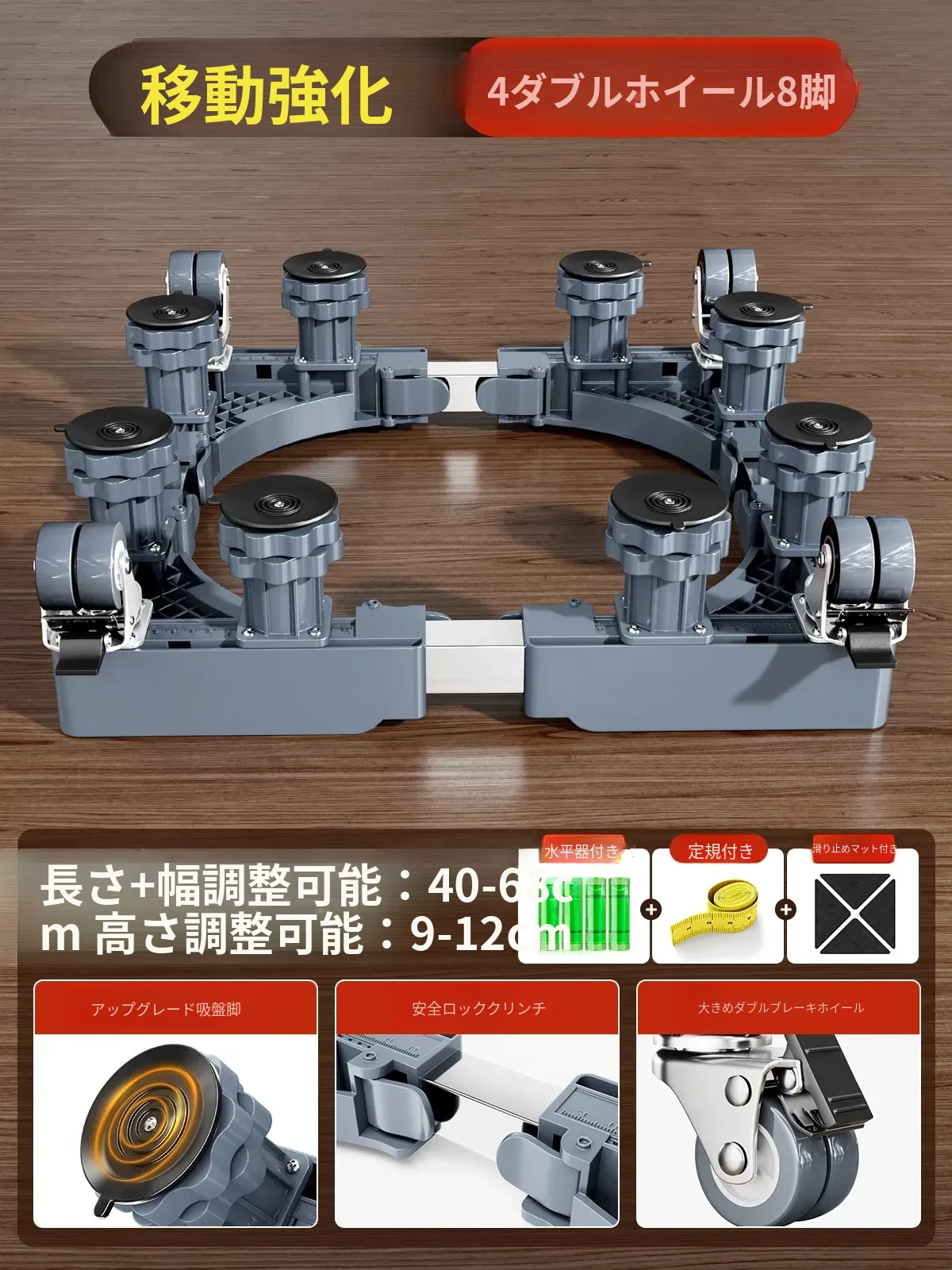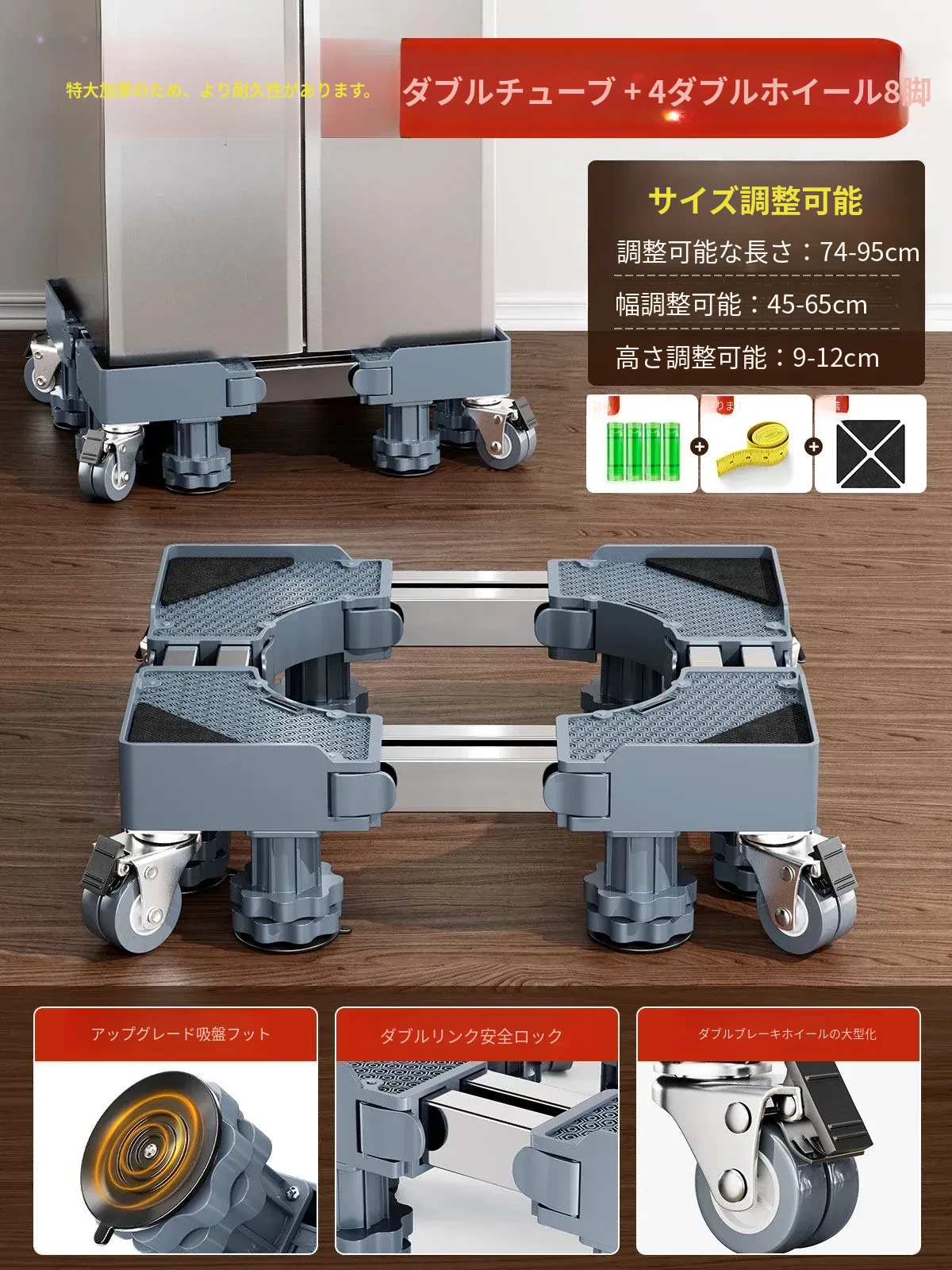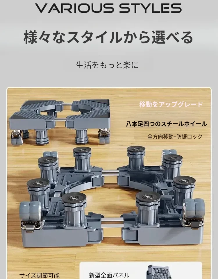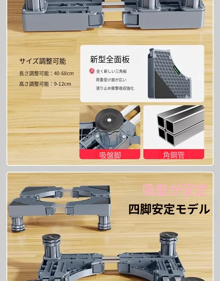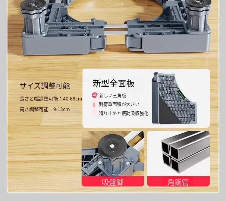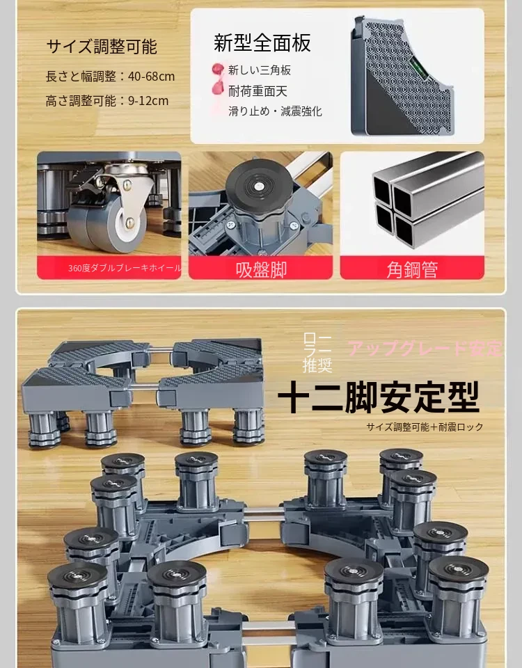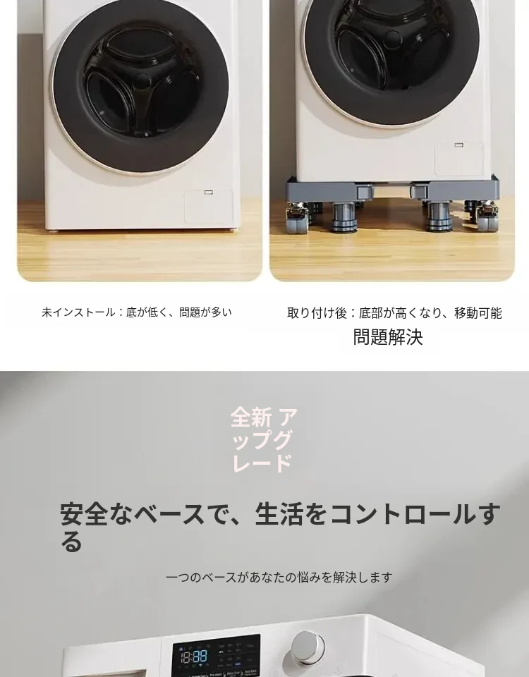 小天鹅洗濯機用移動台、振動防止・滑り止め機能付き!冷蔵庫やドラム式洗濯機にも最適な高さ調整可能な脚パッドで、安心・快適な生活をサポートします。