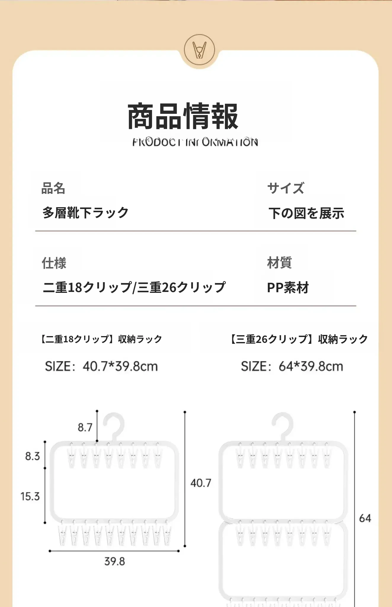 【二層18クリップ】収納乾燥一体型ラック - 2個セット