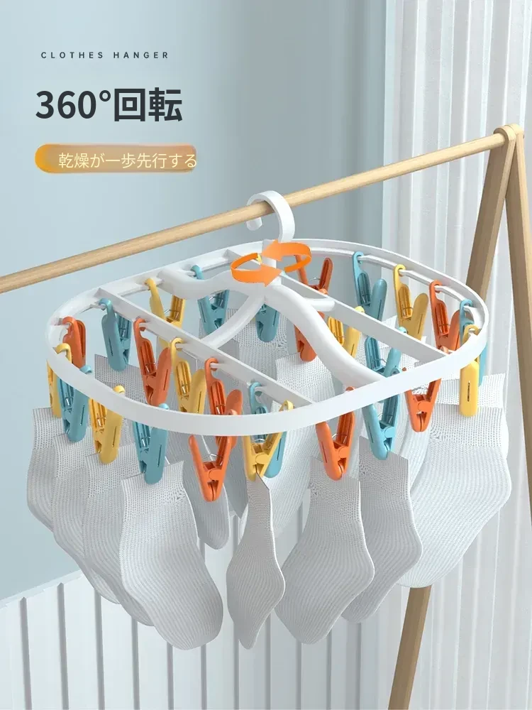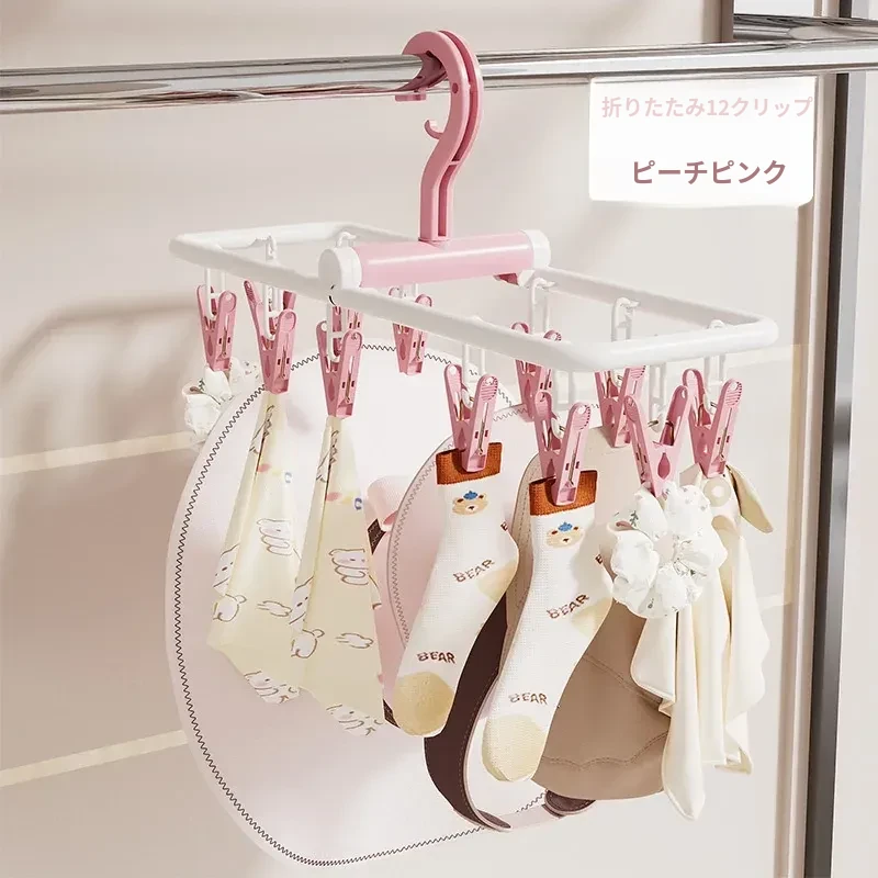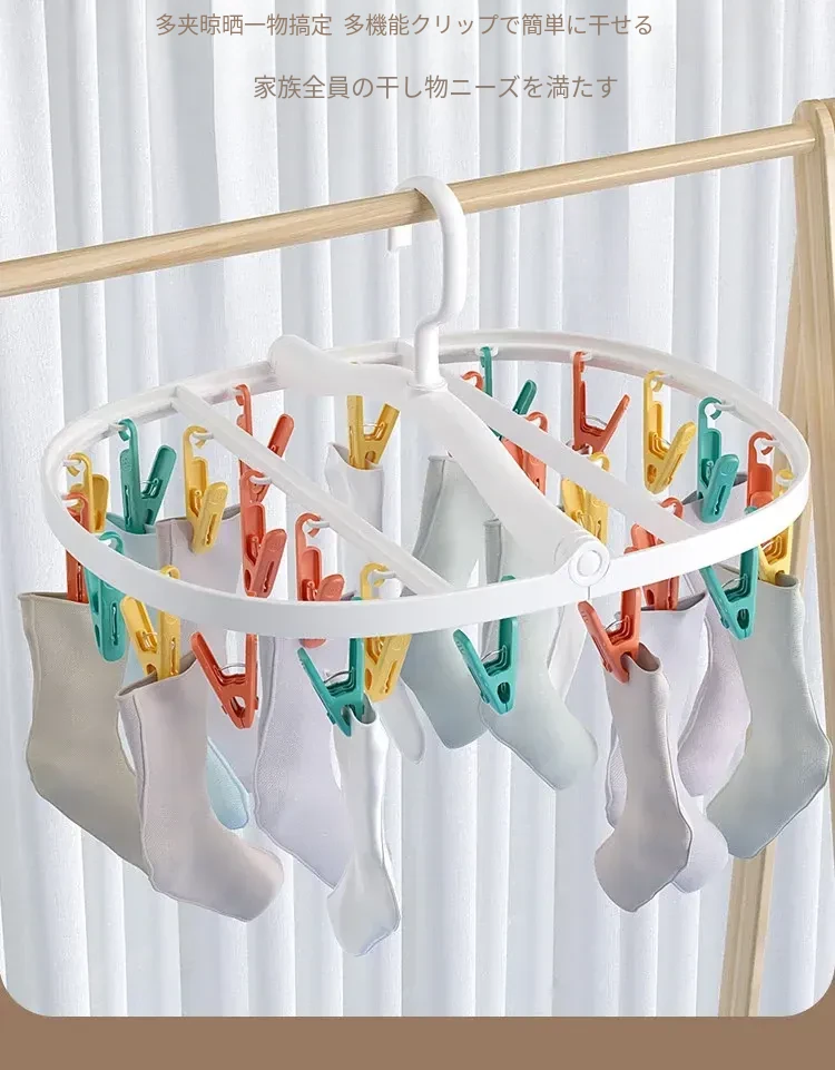 赤ちゃんのための多機能折りたたみ式ソックス干しラック!多くのクリップ付きで、衣類や靴下を効率よく乾かします。家庭用としても便利で、洗濯物の整理整頓も簡単!