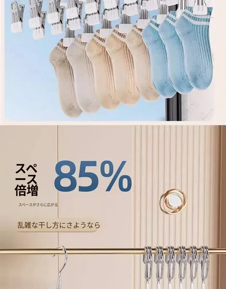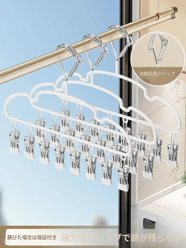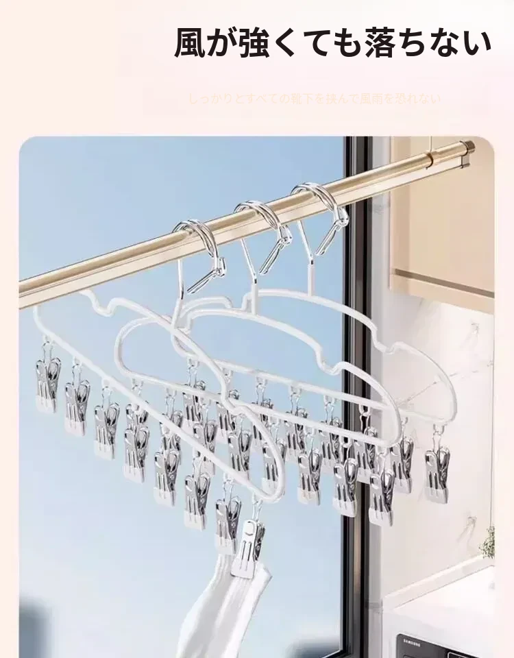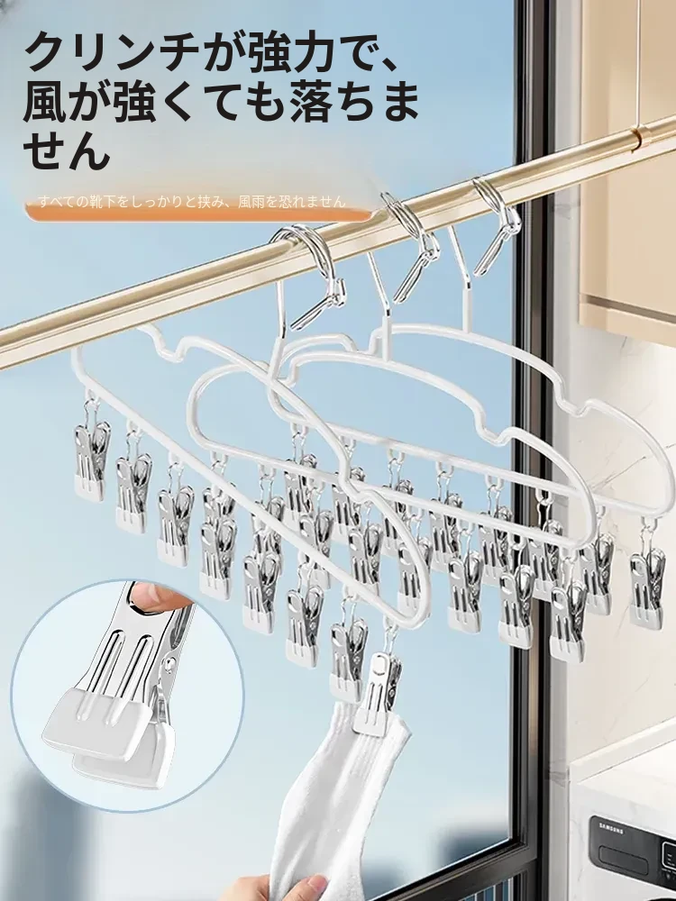 洗濯物干しスタンド クリップ付き 家庭用ベランダ 多機能インナー・靴下乾燥器 風に強い ソックスクリップで便利に!