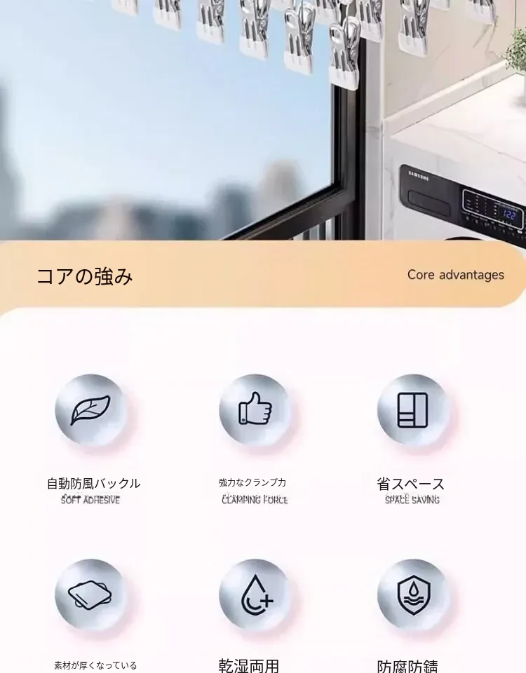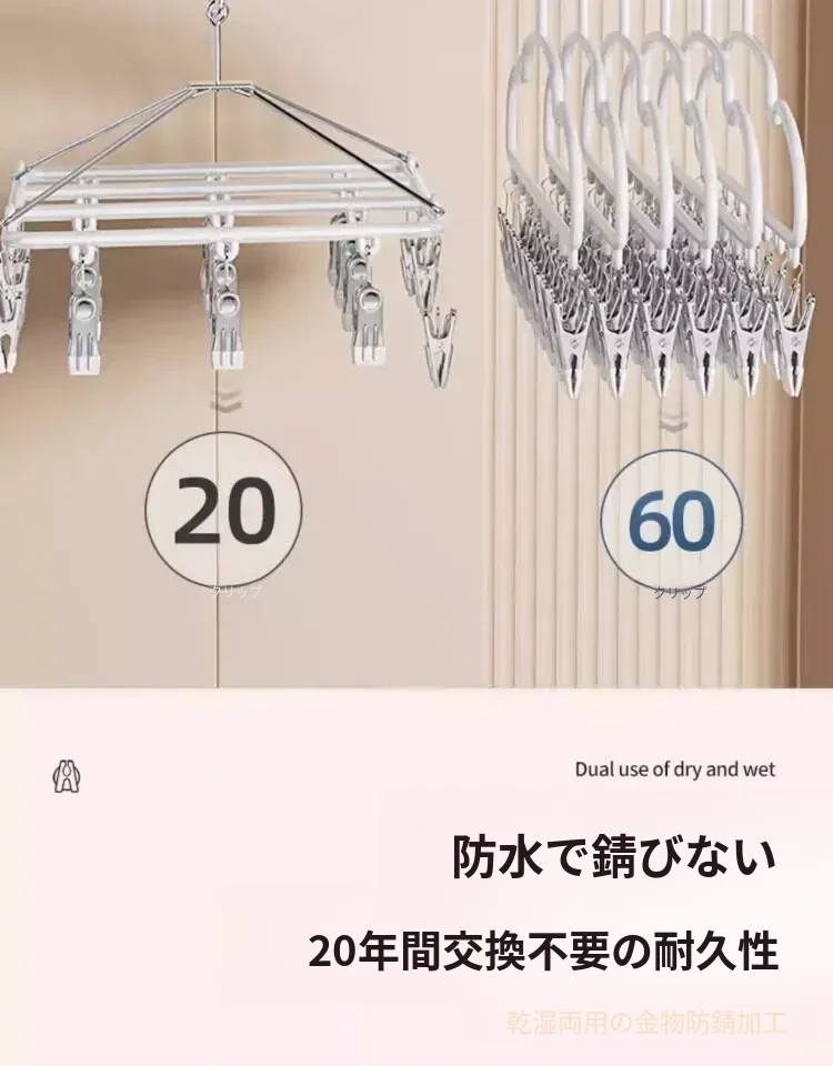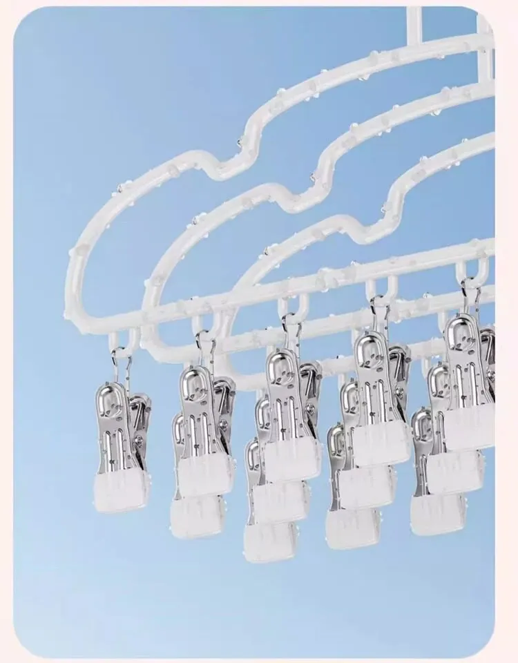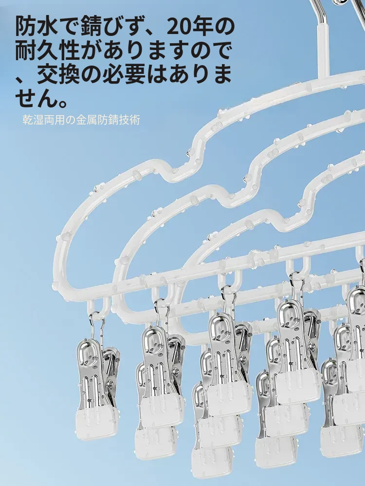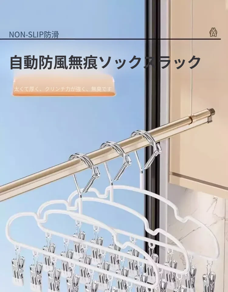 洗濯物干しスタンド クリップ付き 家庭用ベランダ 多機能インナー・靴下乾燥器 風に強い ソックスクリップで便利に!