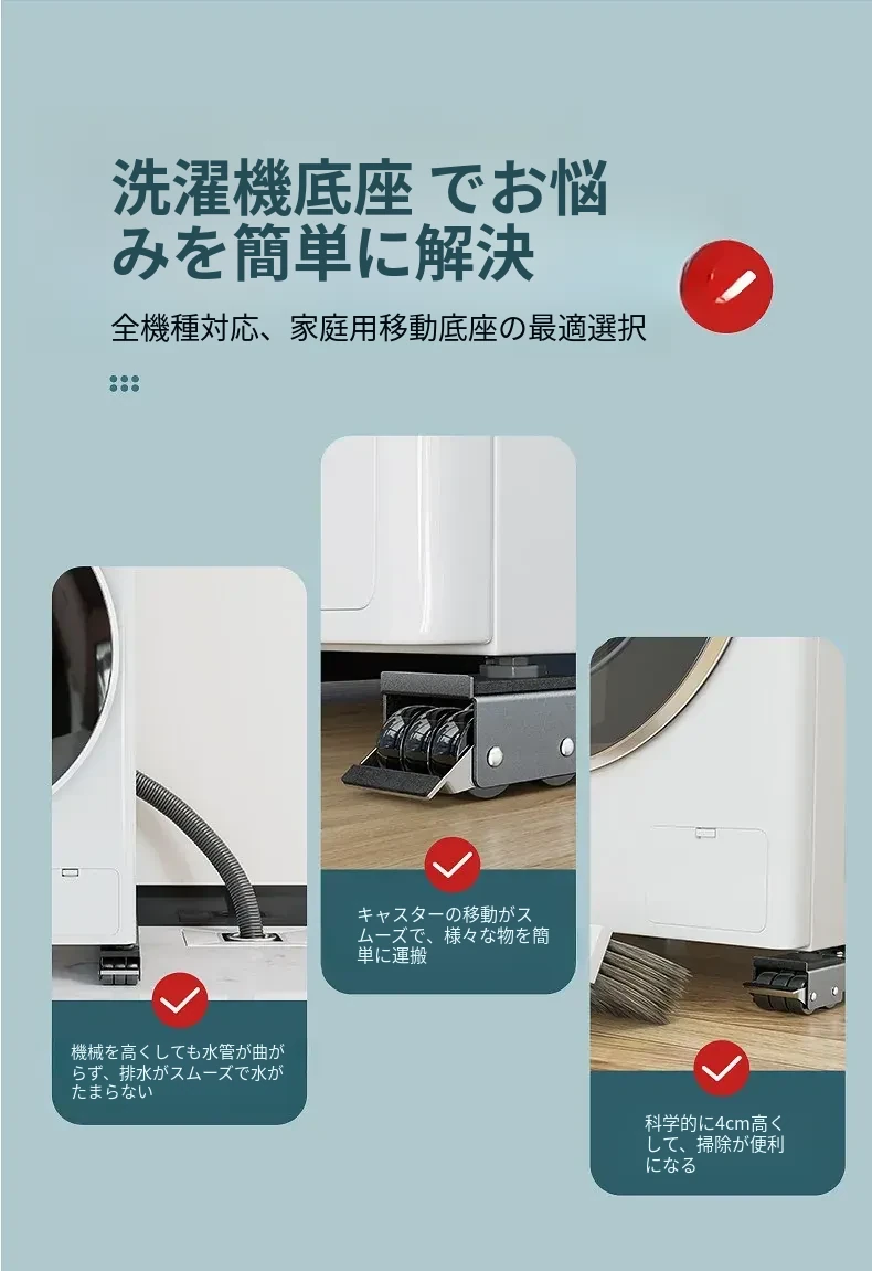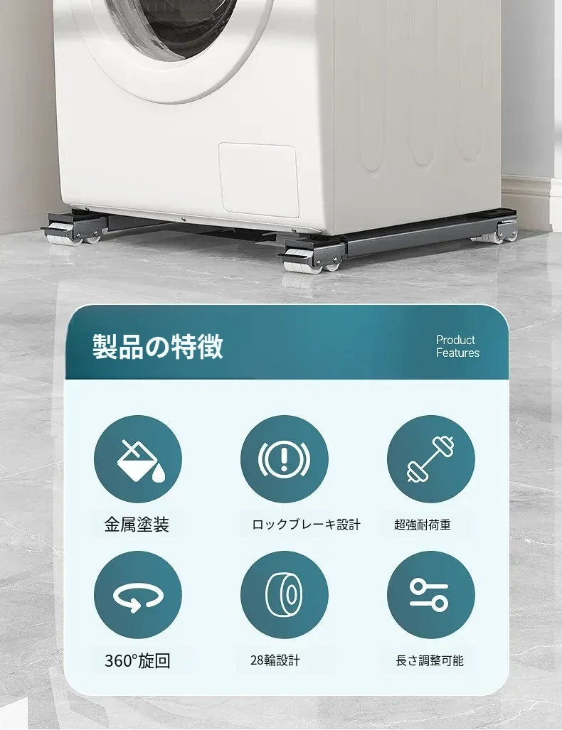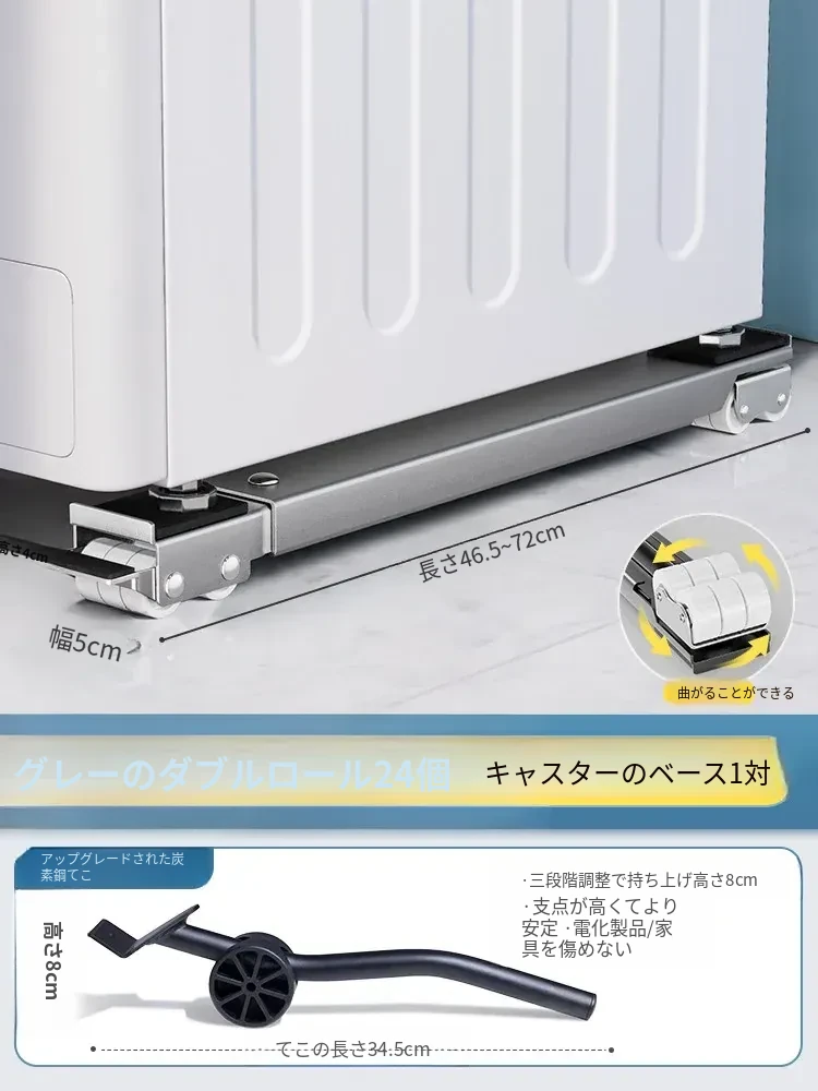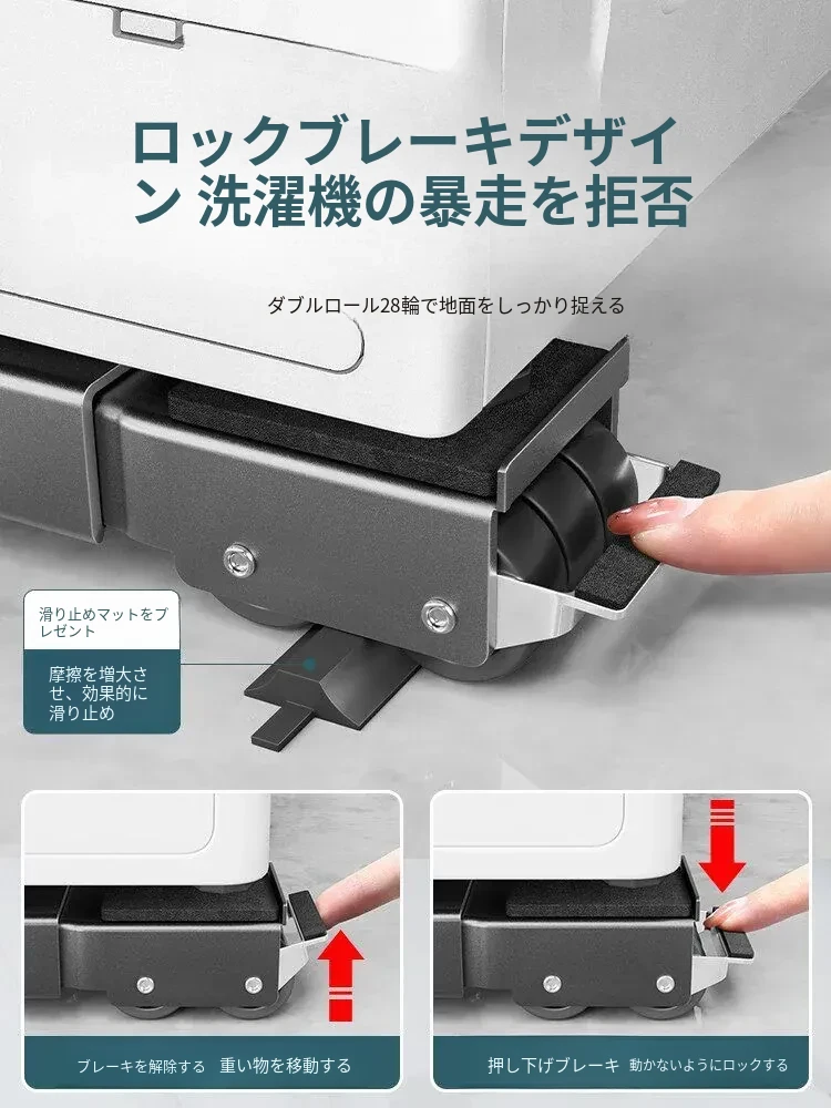 小天鹅専用洗濯機用移動式底座、万向キャスター付きで簡単に移動可能!冷蔵庫にも最適な防震・防滑の汎用ラック。収納力抜群で、家事をもっと楽に。