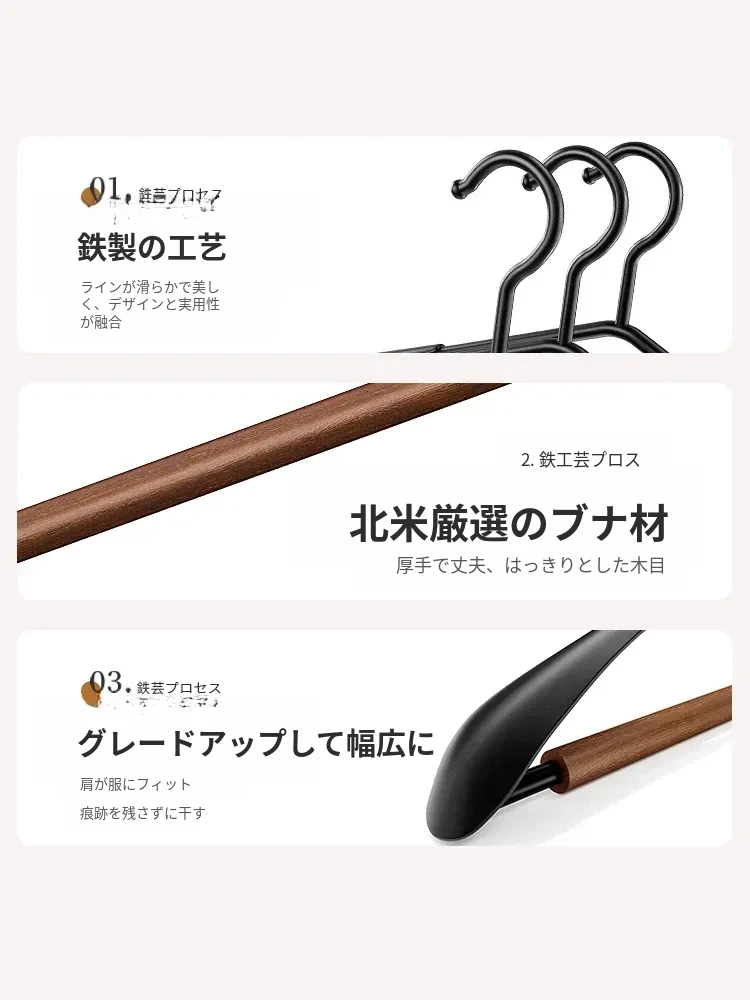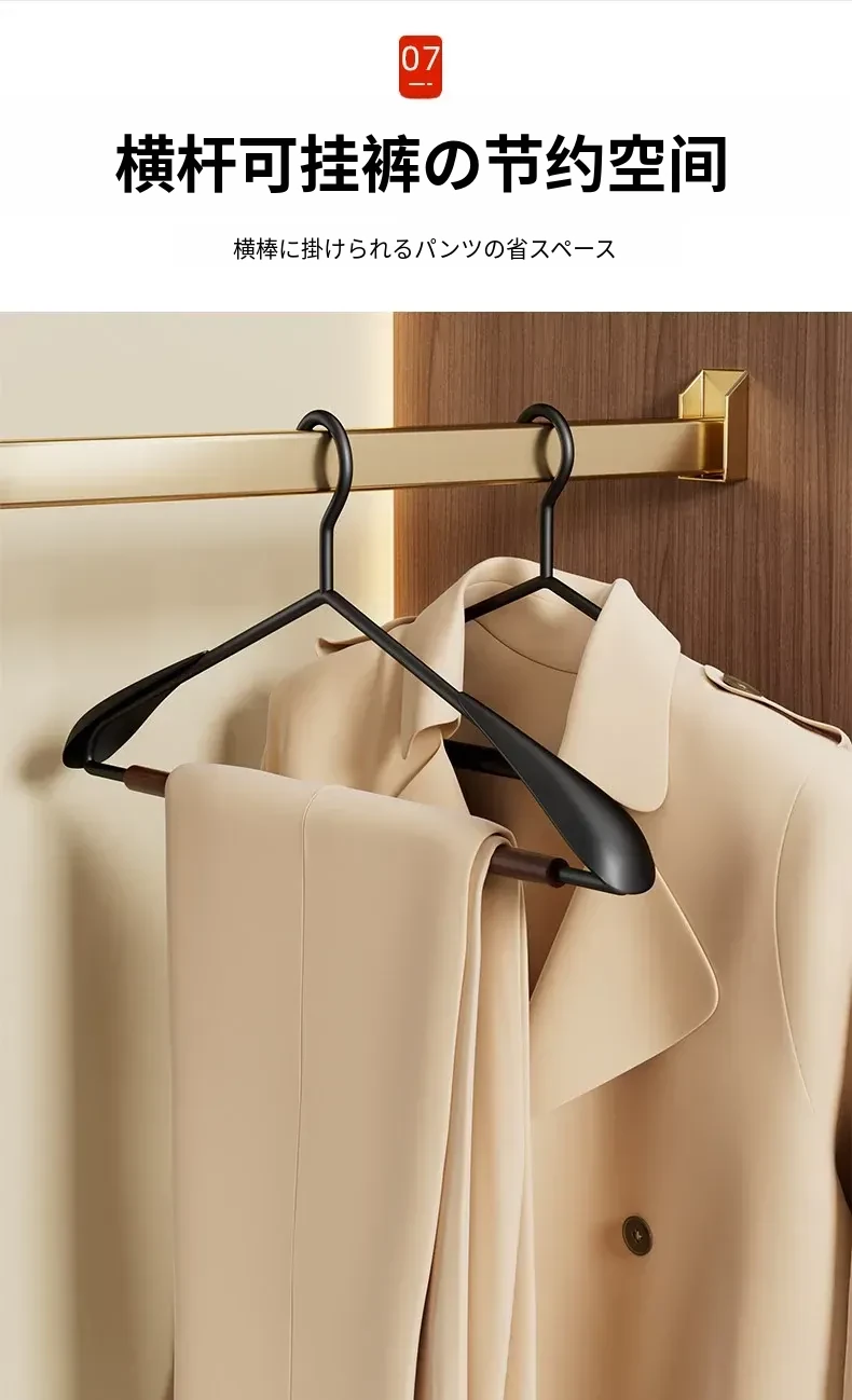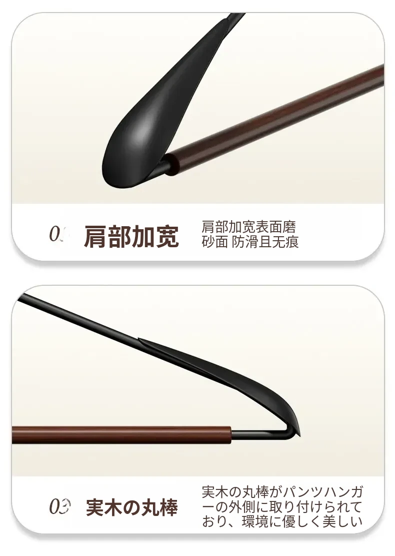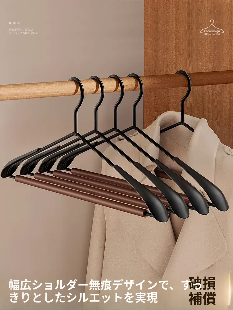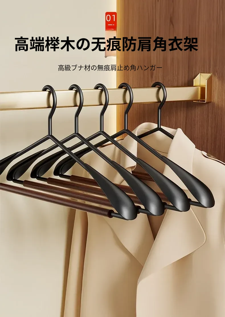 整理士おすすめ!高級感溢れる榉木ハンガー - 滑り止め&無痕デザインで、家庭用やアパレルショップに最適!大衣や服を美しく保つための必需品です。