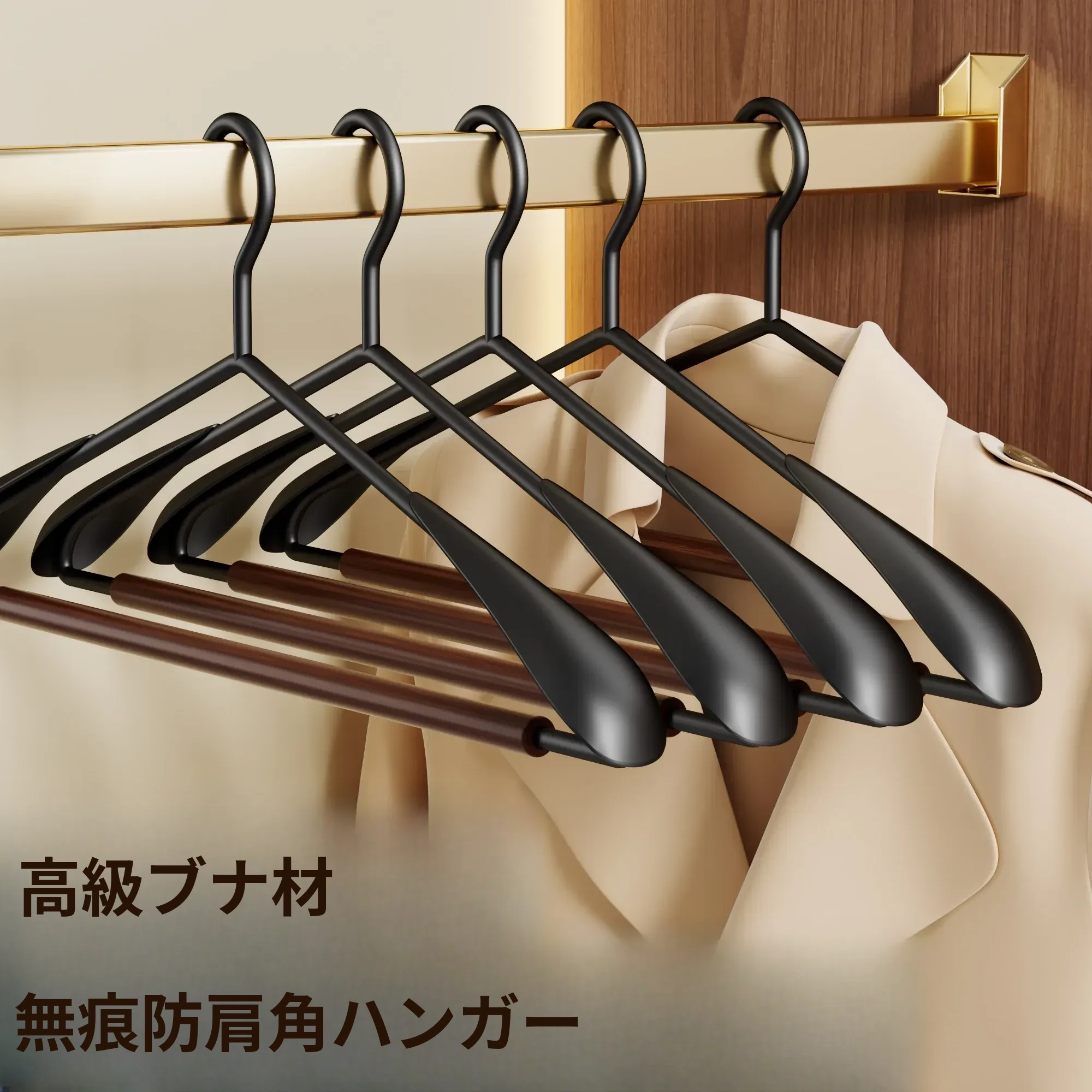 高級木製ハンガー|おしゃれな実木製・軽奢・ワイドショルダー|ブナ材使用|家庭用・ホテル専用|衣服を美しく吊るすための最適アイテム!
