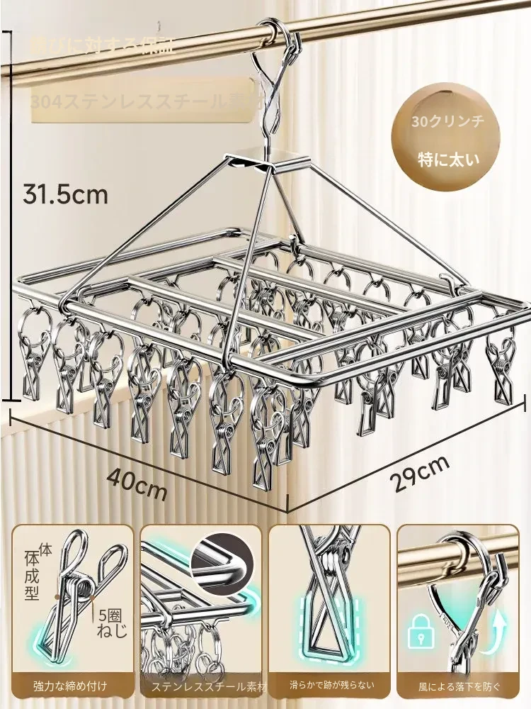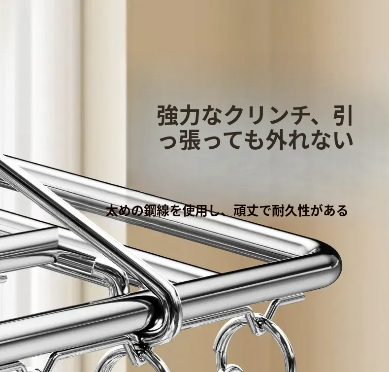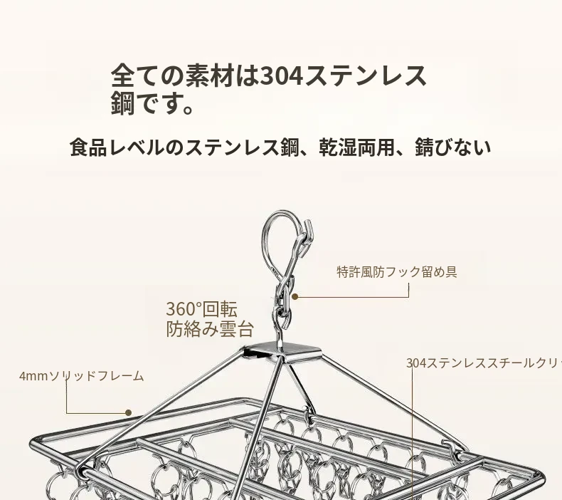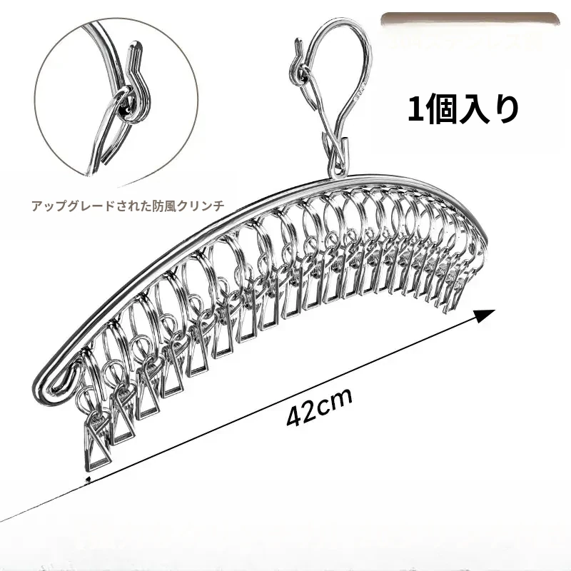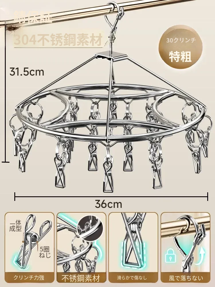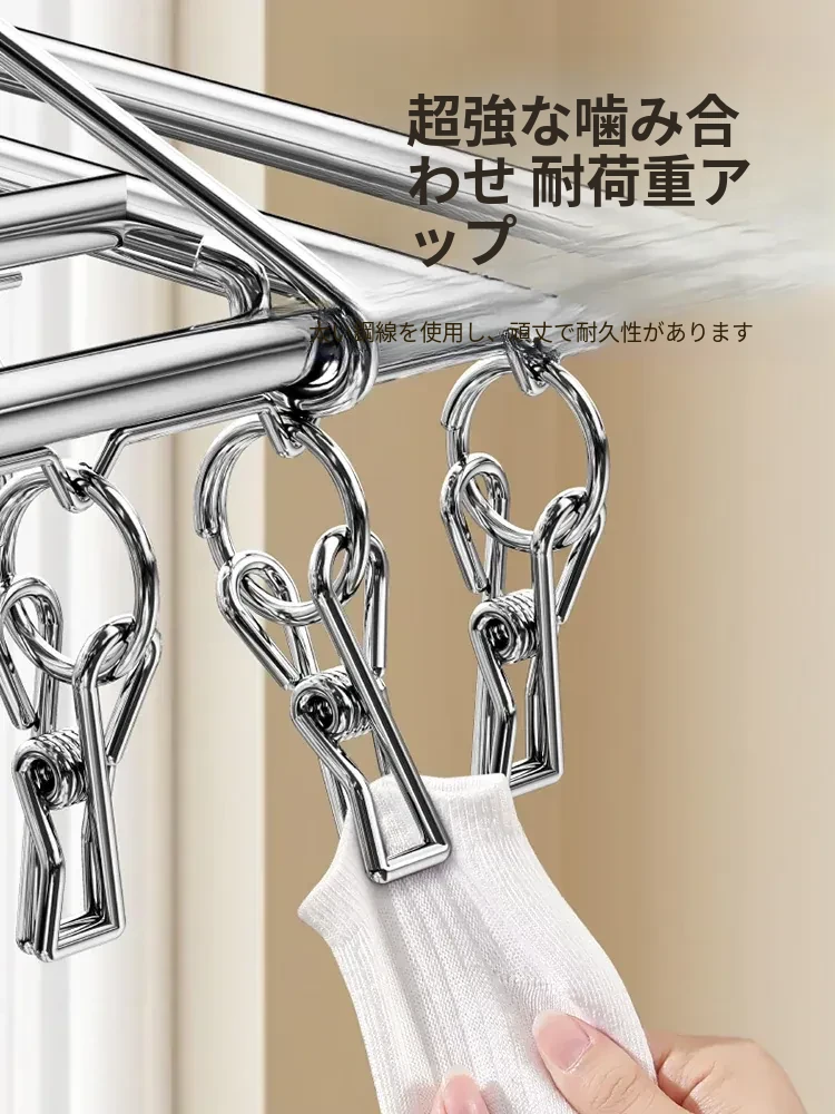 304ステンレス製多機能衣類ハンガー - 風に強い頑丈なフック付き!靴下や小物も一気に干せる便利アイテム!家庭で大活躍間違いなし!