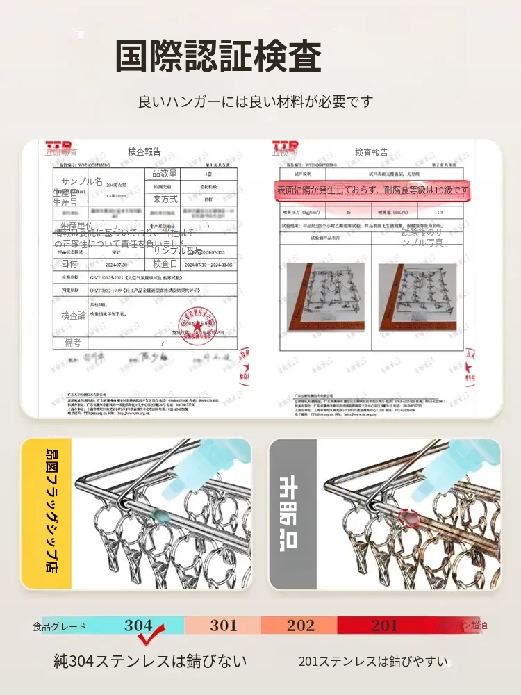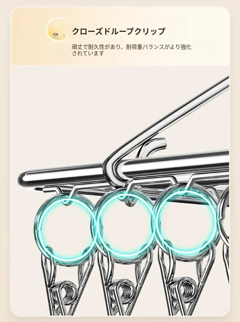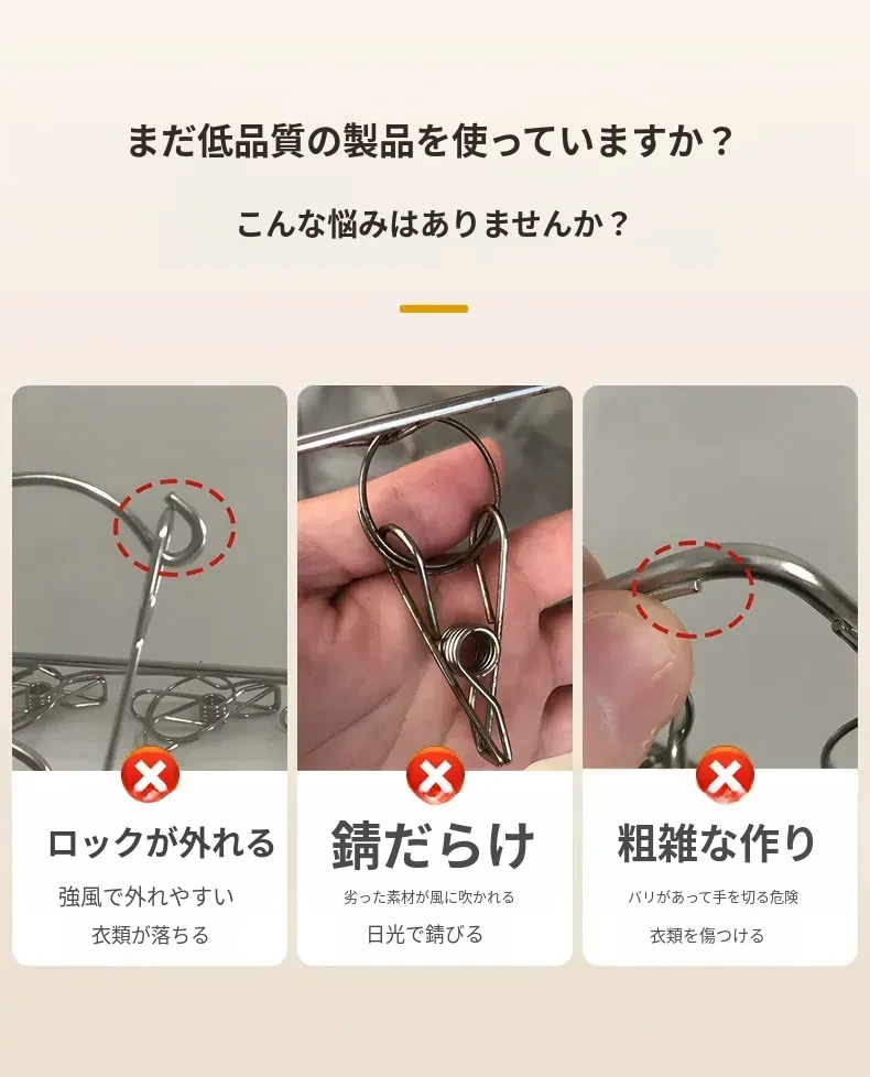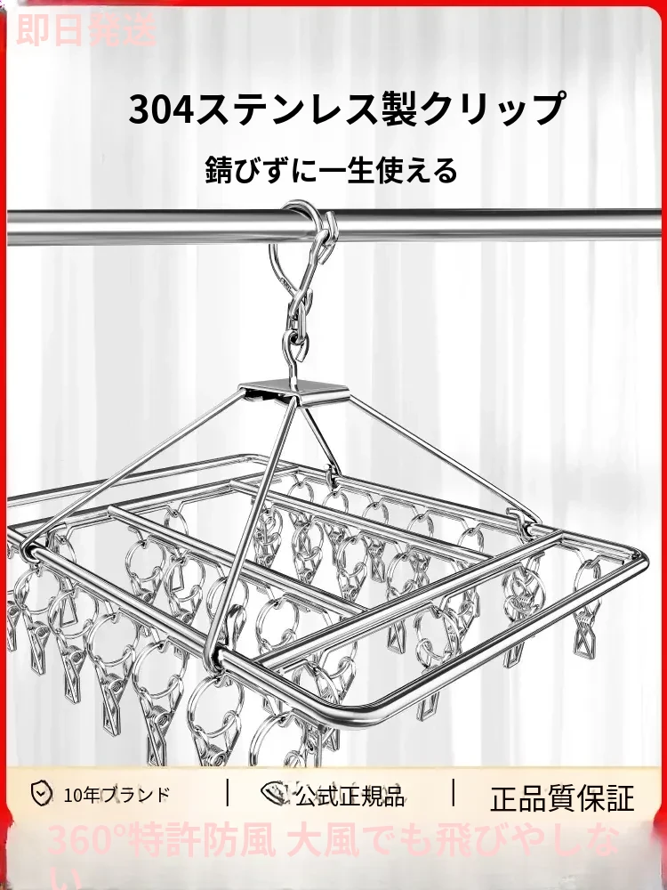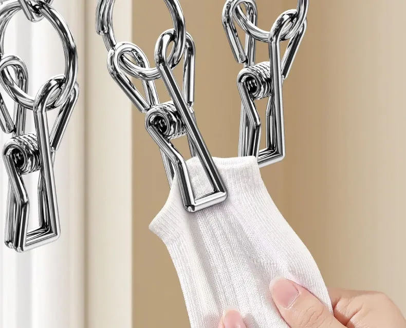 304ステンレス製多機能衣類ハンガー - 風に強い頑丈なフック付き!靴下や小物も一気に干せる便利アイテム!家庭で大活躍間違いなし!