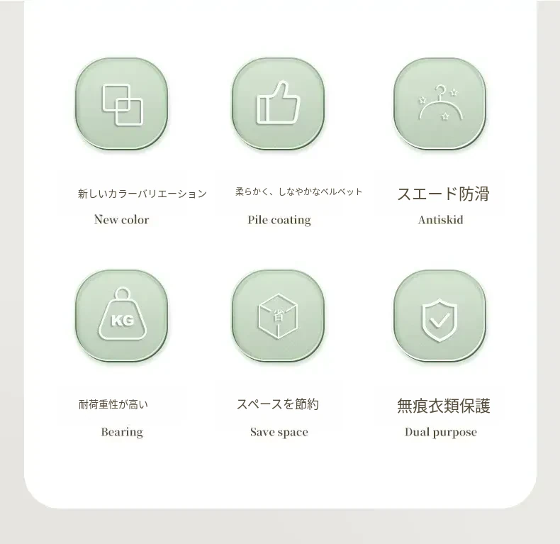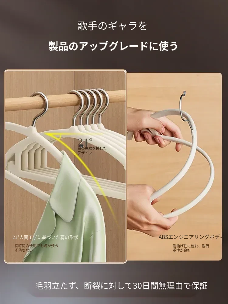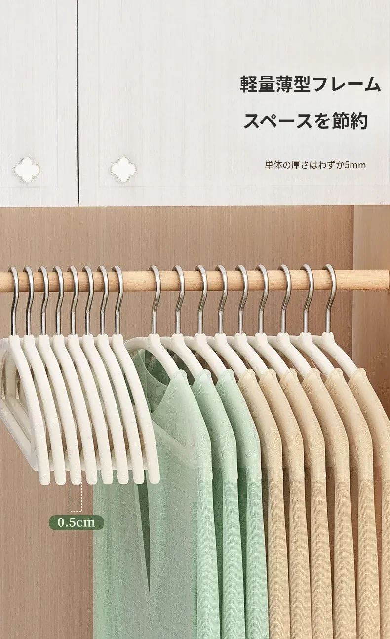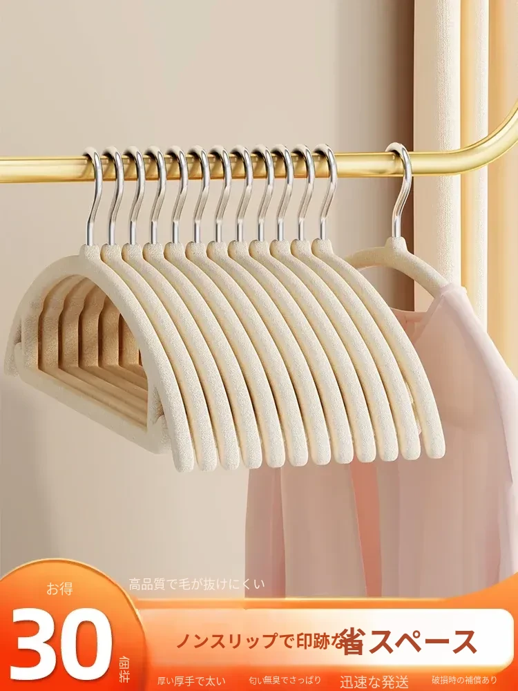 滑らかな仕上げのフロッキー衣類ハンガー - 家庭用衣類整理の必需品!肩部分が無痕で滑り止め機能付き、衣類をしっかり支え、型崩れを防ぎます。美しい収納を実現!