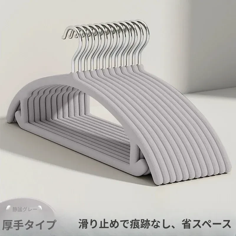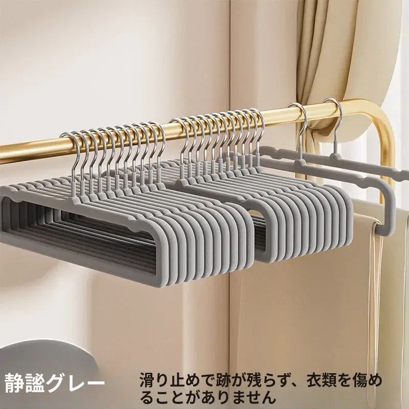2025厚手フロッキングパンツハンガー❤静寂グレー【滑り止め無痕✅毛が落ちない】