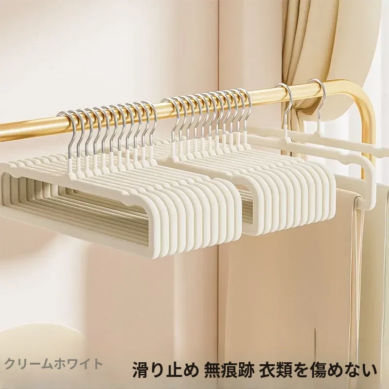 2025厚手フロッキングパンツハンガー❤クリームホワイト【滑り止め無痕✅毛が落ちない】