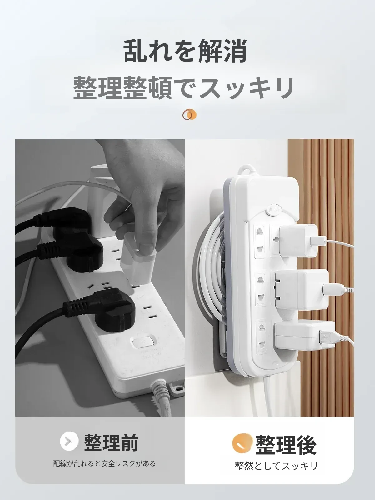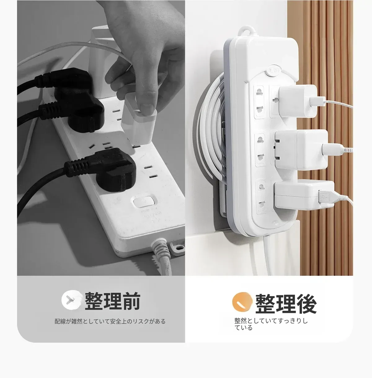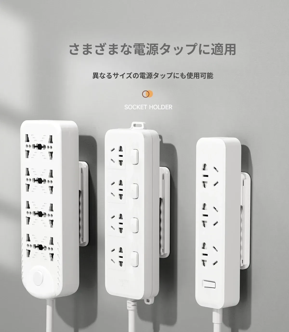 壁掛け用の電源タップ固定器 - 壁に穴を開けずに簡単取り付け!配線をすっきり収納し、ルーターや電源タップをスマートに整理。お部屋を美しく保つ便利アイテム!