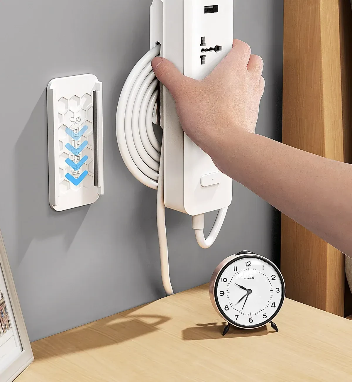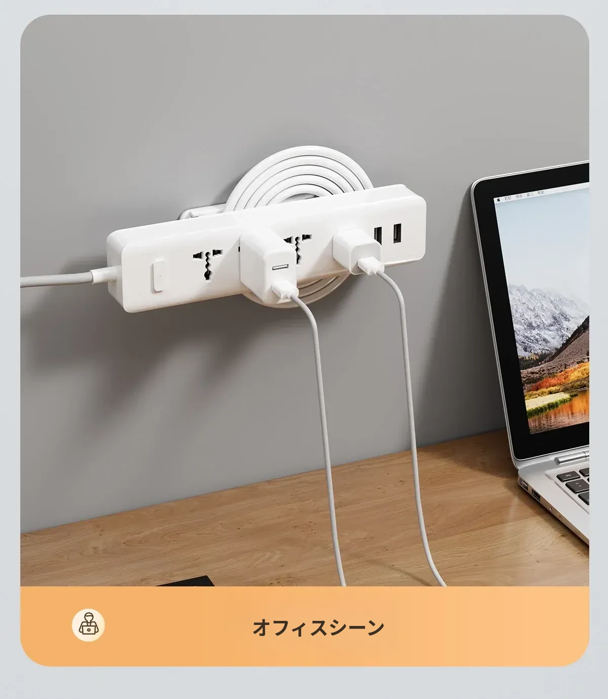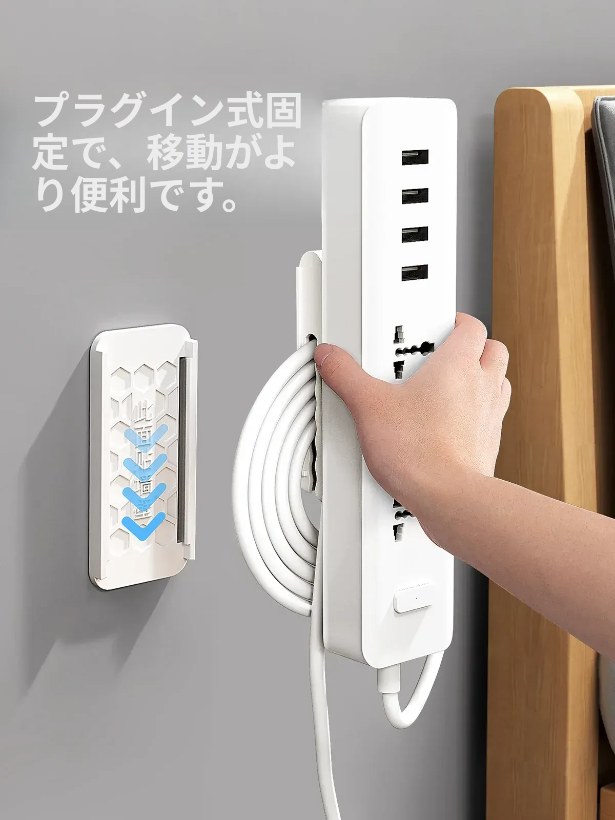 壁掛け用の電源タップ固定器 - 壁に穴を開けずに簡単取り付け!配線をすっきり収納し、ルーターや電源タップをスマートに整理。お部屋を美しく保つ便利アイテム!